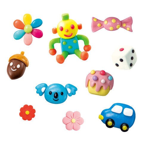 パッケージサイズ : W340×H300×D15(mm) 対象年齢 : 3歳~ 素材 : カラフルねんど板・くるりんカッター・とりさんヘラ:PP