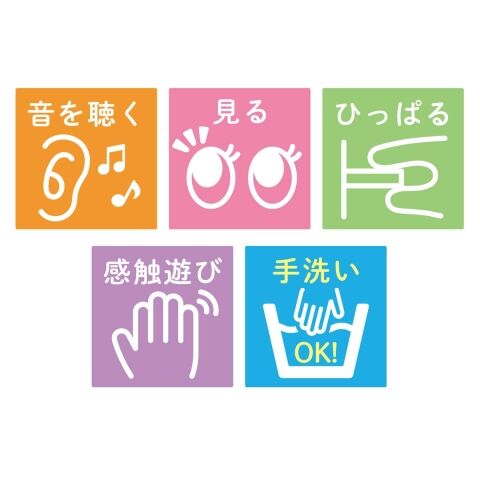● リラックマのマスコットを入れられるポケットやめくり遊びなど、指先の発達を促します。