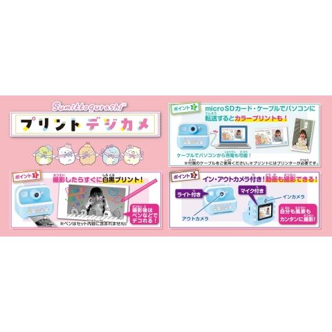 ● すみっコたちの可愛いフレーム付きで撮影でき、撮影後すぐに白黒写真が印刷されて出てくるカメラです。