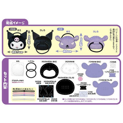 - 出来上がりサイズ(ゴム部分を含めず)(約):[クロミ]横8.5×縦8cm [バク]横9×縦5cm
