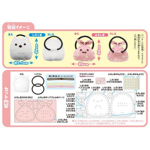 • 素材:[布・糸・綿]ポリエステル [ヘアゴム]ナイロン・ゴム [縫い針]ABS