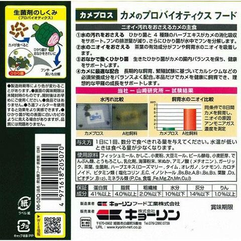 “ひかり菌”と茶葉の効果で水の汚れと臭いを抑えるカメの総合栄養食