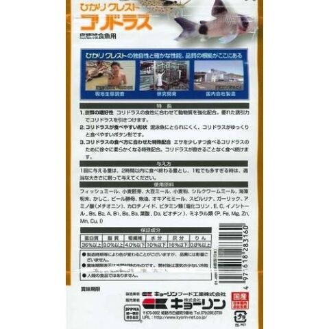 従来、“水槽のお掃除屋さん”として特に餌を与えられることがなく、十分な栄養をとれないために健全な成長を妨げられがちだった、コリドラスのための専用飼料です。