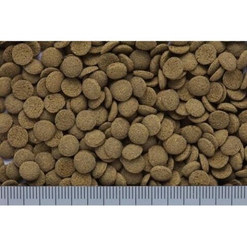 ■使用原料:フィッシュミール、小麦胚芽、大豆ミール、小麦粉、シルクワームミール、海藻粉末、かしこ、ビール酵母、魚油、オキアミミール、スピルリナ、ガーリック、アミノ酸(メチオニン)、カロチノイド、ビタミン類(塩化コリンECイノシトールB5B2AB1B6B3葉酸D3ビオチン)、ミネラル類(PFeMgZnMnCuI)