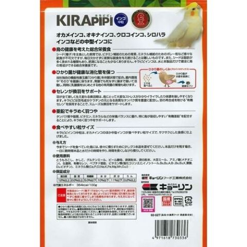 キラピピインコは、水と本製品だけで健全に鳥の育成ができる総合栄養食です。