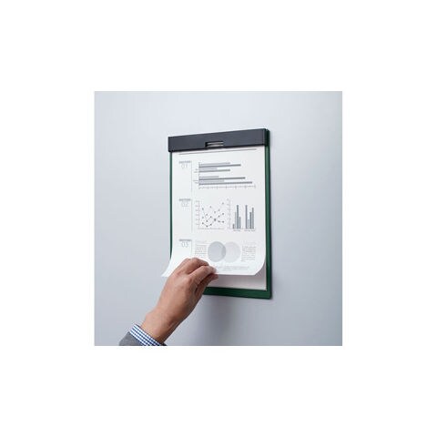 ◆マグネットの力で紙をめくったまま固定できるクリップボードです。フラップがめくった紙を押さえます。