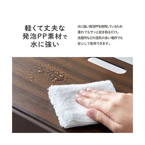 水に強い発泡PPを使用しているため濡れてもサッと拭き取るだけ。洗面所などの湿気の多い場所でも安心して使用できます。