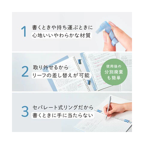 ◆表紙とリングは繰り返し使うことができ、使用後の分別廃棄も簡単