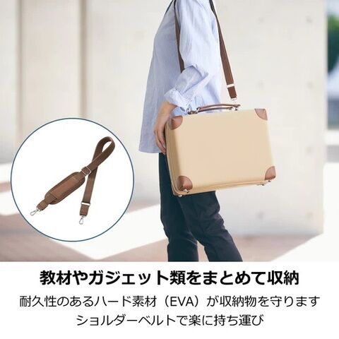 教材やガジェット類をまとめて収納でき、楽に持ち運びできます。持ち歩きに便利なショルダーベルトは肩の負担を軽減する肩あて付き。