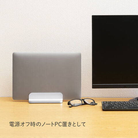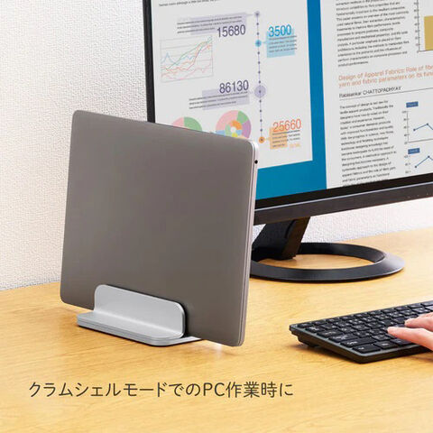 ノートパソコンやタブレットを置ける縦置きのスタンドです。