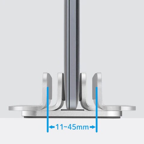 11~17インチのノートパソコン・タブレットに対応しており、付属のレンチを使用することで、スタンド部は11~45mmの幅で無段階に調整できます。