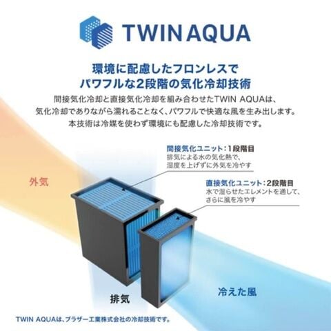 ◆環境に配慮したフロンレスで、パワフルな2段階の気化冷却技術「TwinAqua®」