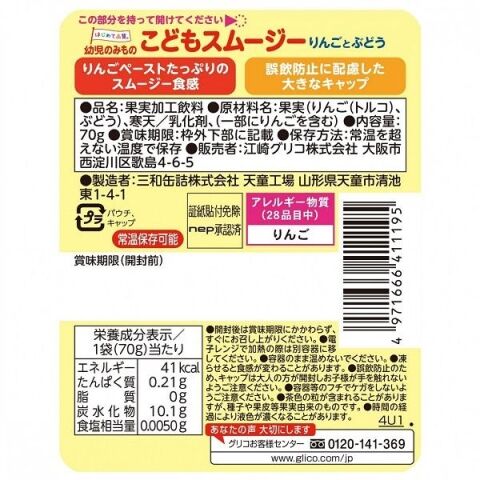グリコ 幼児のみもの こどもスムージー りんごとぶどう 70g コドモスム-ジ-リンゴトブドウ 【返品種別A】