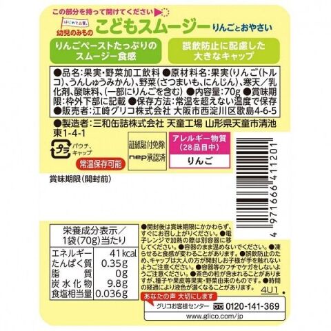 グリコ 幼児のみもの こどもスムージー りんごとおやさい 70g コドモスム-ジ-リンゴトオヤサイ 【返品種別A】