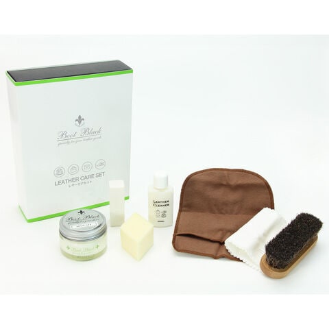 - セット内容:デリケートクリーム(無色)×1、レザークリーナー×1、消しゴムタイプクリーナー×1、馬毛ブラシ×1、クリーム塗布用パフ×1、クロス×1、グローブクロス×1