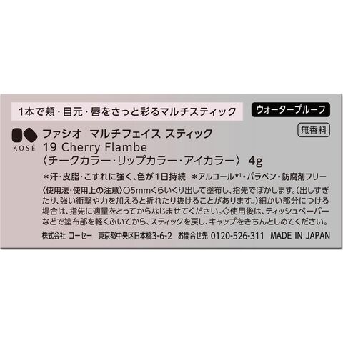 コーセー ファシオ マルチフェイス スティック 19 Cherry Flambe FSOマルチフエイスステイツク #019 【返品種別A】
