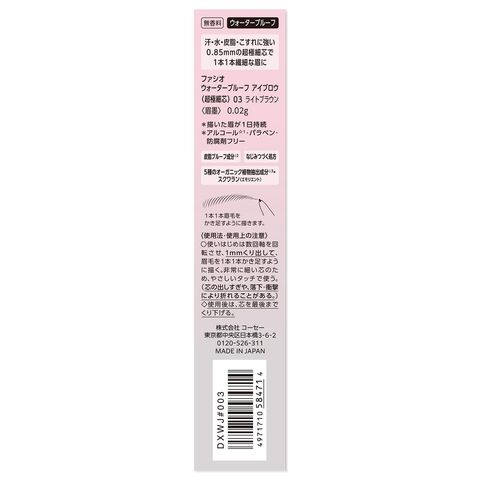 ●汗・水・皮脂・こすれに強い、ウォータープルーフタイプの超極細芯ペンシルアイブロウです。