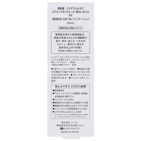 コーセー 雪肌精 クリアウェルネス エアリースキンヴェール BBエッセンス 02 (30ml) SKCWエアリ-BB #002 【返品種別A】