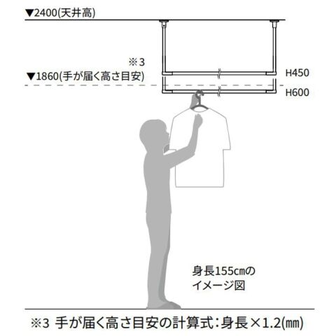 施工がしやすく、丈夫で安全な固定式室内物干です。