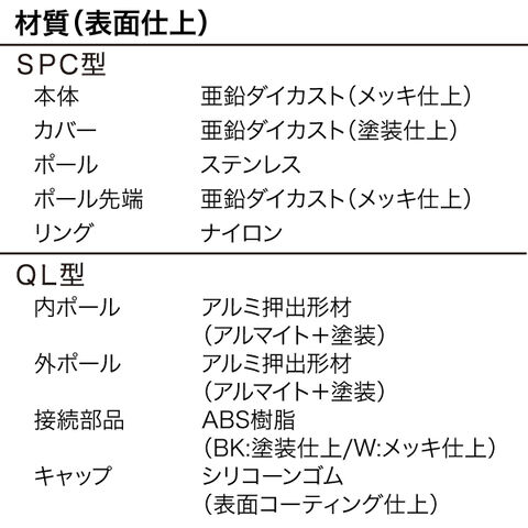 ・ポール先端:亜鉛ダイカスト(メッキ仕上)