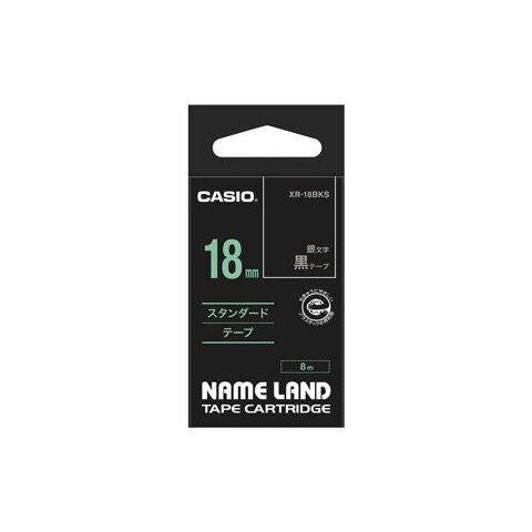 カシオ テープカートリッジ スタンダードテープ(18 幅/黒テープ/銀文字) CASIO NAME LAND(ネームランド) XR-18BKS 【返品種別A】