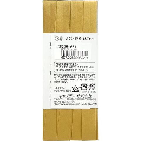 キャプテン サテン バイアステープ 両折 巾12.7mm×2.75m巻 #651 ゴールド CP235 651 【返品種別B】