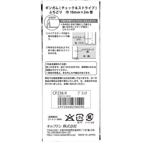 キャプテン ギンガム チェック&ストライプ ふちどり バイアステープ(#9 ブラック・巾10mm×2m巻) CP2389 【返品種別B】
