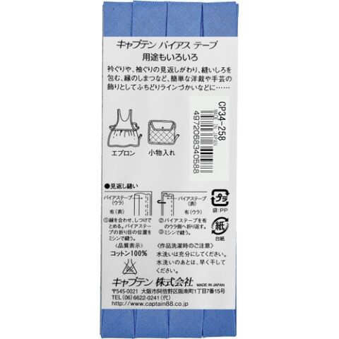 キャプテン ピュアコットン両折バイアス 12.7mm巾×2.75m巻 1本 258 CP34 258 【返品種別B】