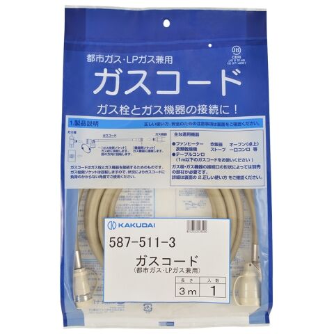 カクダイ ガスコード 3m (都市ガス・LPガス兼用) 587-511-3 【返品種別A】