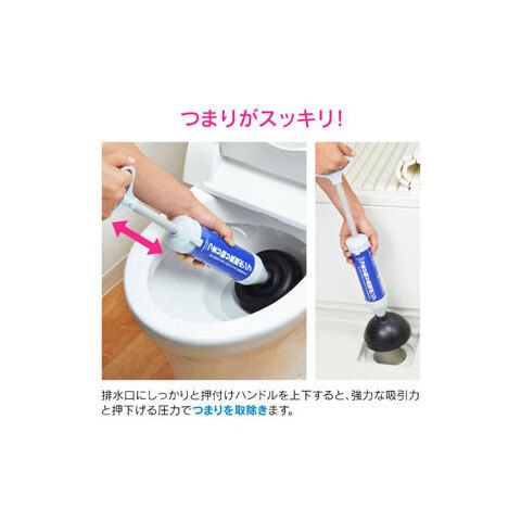 排水口にしっかりと押付けハンドルを上下すると、強力な吸引力と押下げる圧力でつまりを取り除きます。