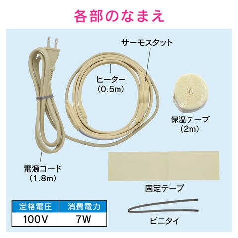- 付属品:ビニタイ、固定テープ、保温テープ(2m)