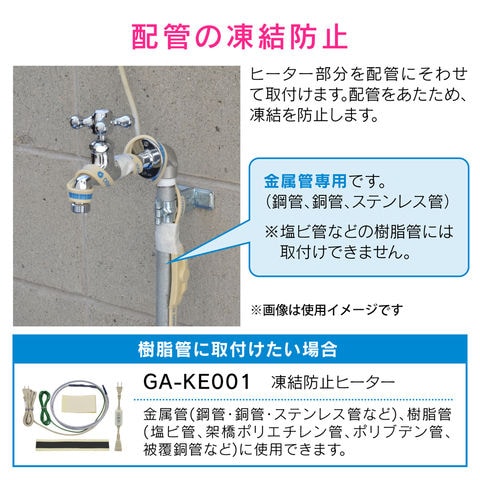◆付属の保温テープ(2m)で足りない場合は、別売りの保温テープGA-KE007、GA-KE008をご使用ください。
