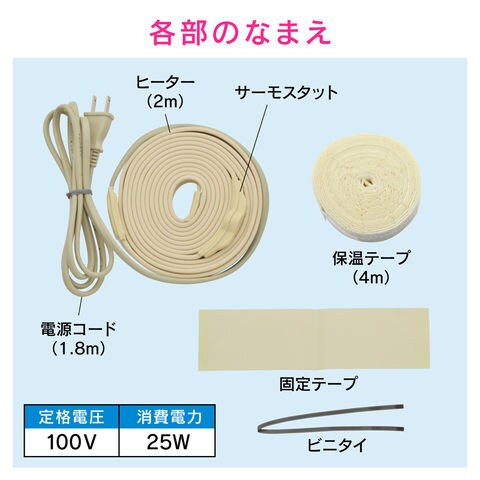 - 付属品:ビニタイ、固定テープ、保温テープ(4m)