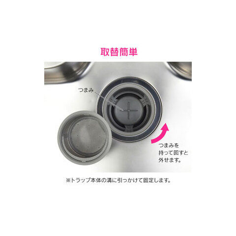 取付はトラップ本体にある溝に防臭ワンを引っかけて固定します。