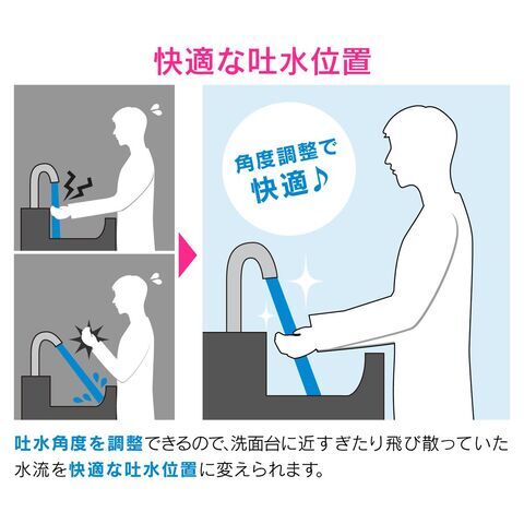 ◆水が出てくる部分のプレートを動かすことにより、吐水角度の調節ができます。