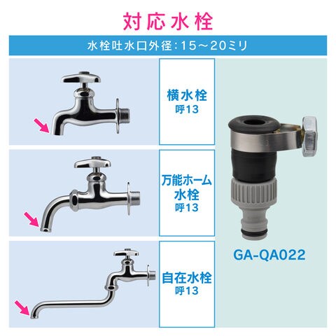 - 対応水栓:横水栓(呼13)、万能ホーム水栓(呼13)、自在水栓(呼13)