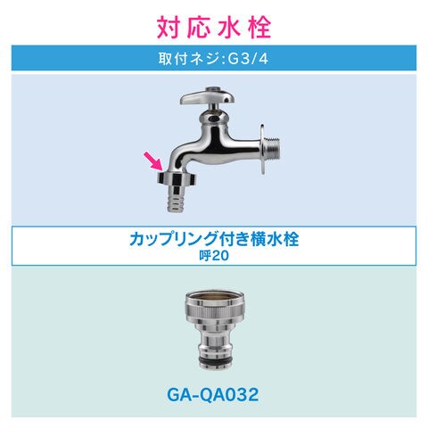 ◆呼20のカップリング付水栓に取付できます。(取付対応ネジ:G3/4)