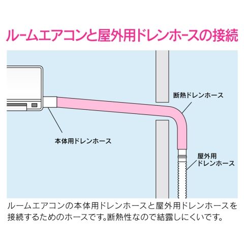 ◆エアコン本体ホース、屋外用ドレンホース口外径16ミリに取付できます。