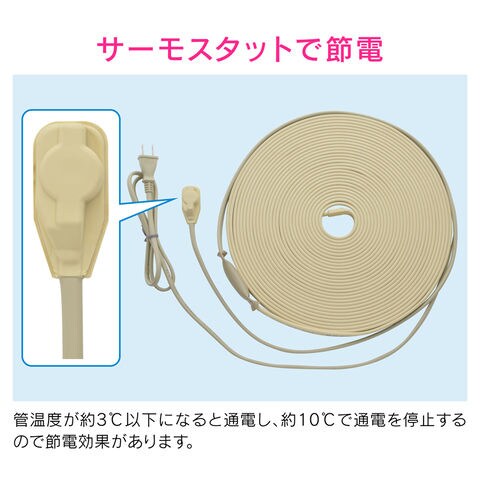 ◆管温度約3℃で通電開始し、約10℃で停止します。