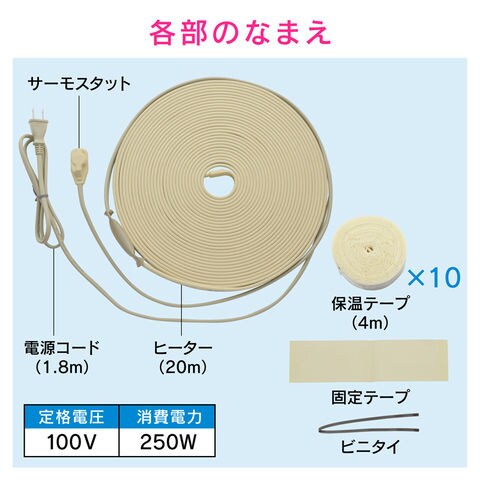 - 付属品:ビニタイ、固定テープ、保温テープ(4m×10個)