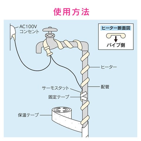 ◆外気温や配管径に合わせて、ヒーターを巻付けます。