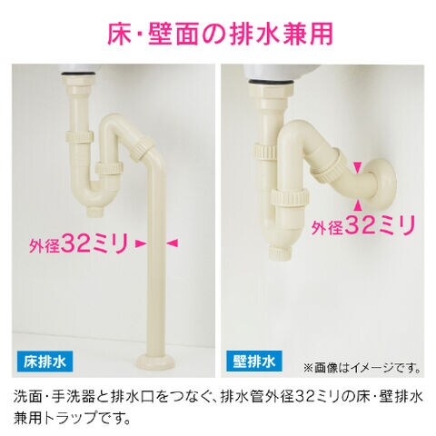 ◆32ミリ規格のオーバーフロー付き洗面・手洗器用樹脂製排水トラップです。
