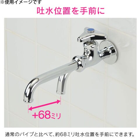◆通常のパイプより吐水位置を手前にすることができるので、必要なところまで水流が届くようになり、使いやすさがアップします。