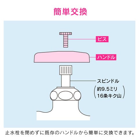 ◆止水栓を止めずに既存のハンドルから簡単に交換できます。