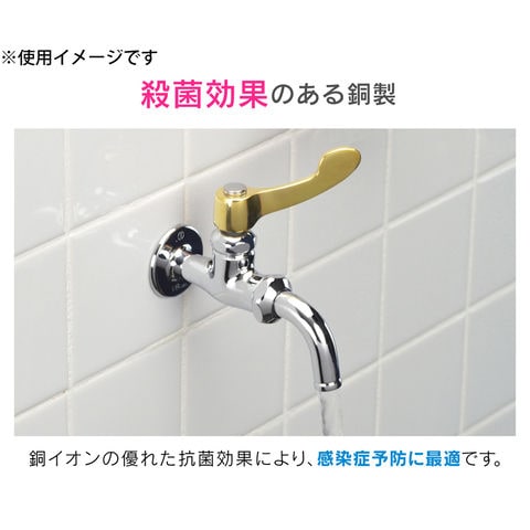 ◆手の甲で開閉できる衛生的な銅製レバーハンドルです。
