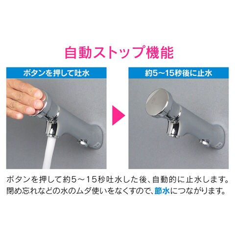 ◆蛇口上部を押すと一定時間水が出て、自動的に止水します。