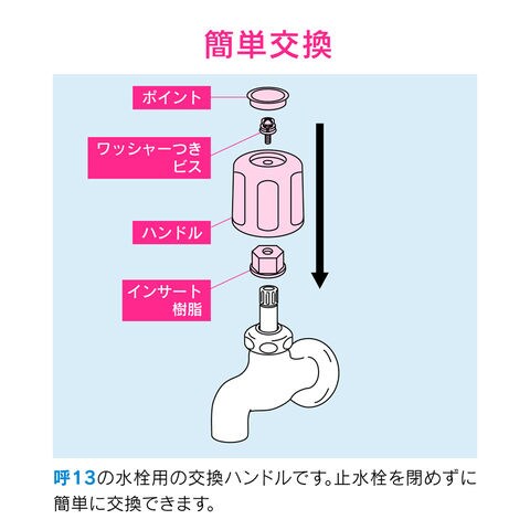 ◆止水栓を止めずに既存のハンドルから簡単に交換できます。