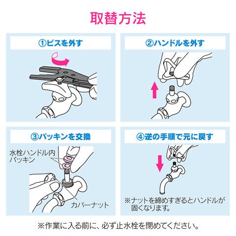 ◆水栓ハンドル内のパッキンを簡単に交換できます。