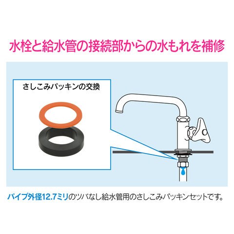 ◆ツバなし給水管をつなぐフクロナットからの水もれを補修するパッキンセットです。