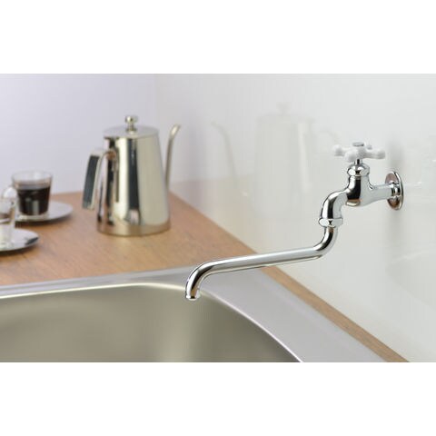 ◆ホワイトクロスハンドルがオシャレな呼13の自在水栓です。